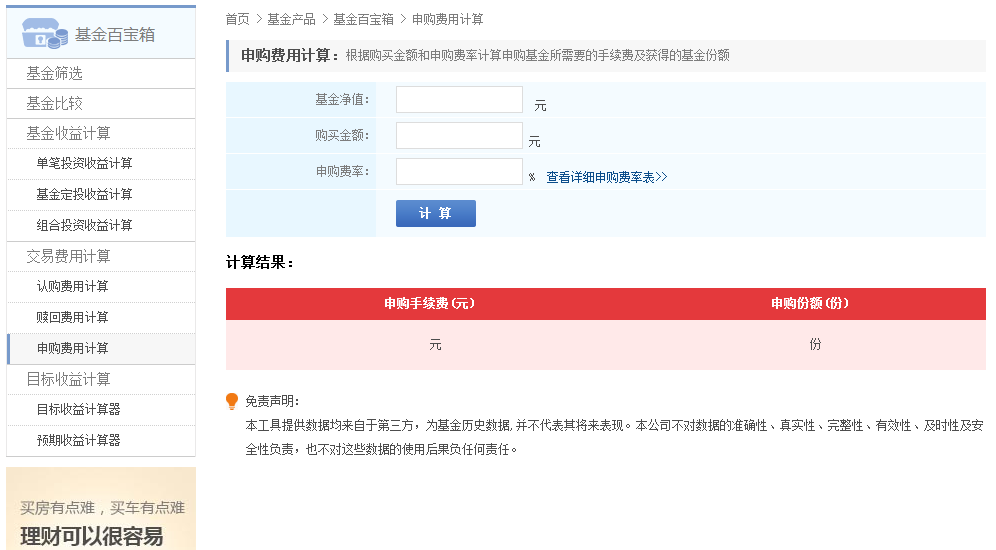 根据购买金额和申购费率计算申购基金所需要的手续费及获得的基金份额。按照证监会要求,采用外扣法计算认/申购手续费。
