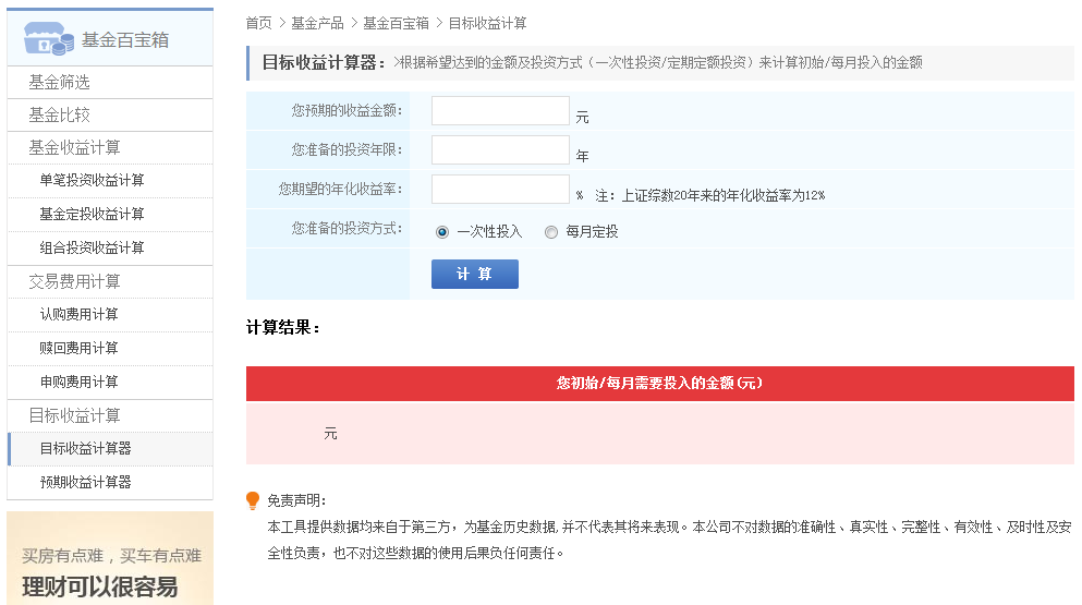 根据希望达到的金额及投资方式(一次性投资/定期定额投资)来计算初始/每月投入的金额。